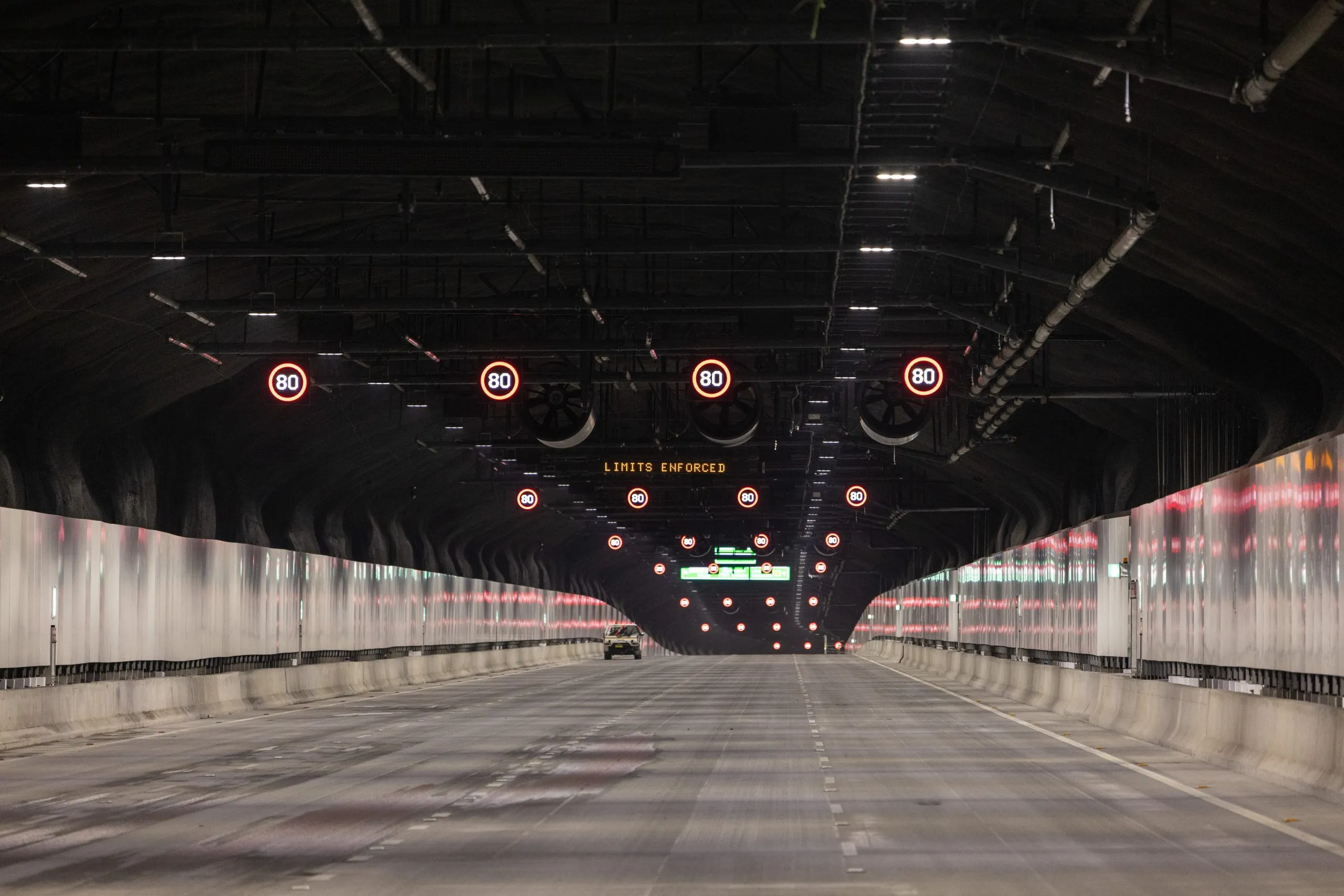 The WestConnex program of works provides motorists with a continuous 33-km traffic-light free motorway network, with connections for future projects linking the North Shore and Northern Beaches, Sydney airport and the southern suburbs.